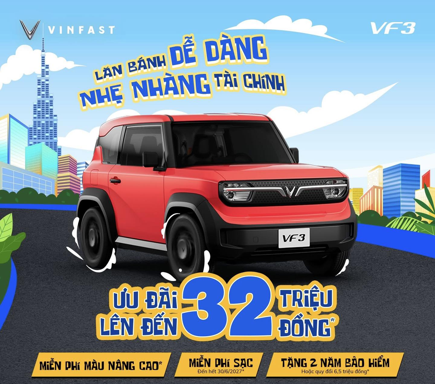 VF 3 mang đến ưu đãi đặc biệt giúp bạn lăn bánh dễ dàng hơn bao giờ hết: